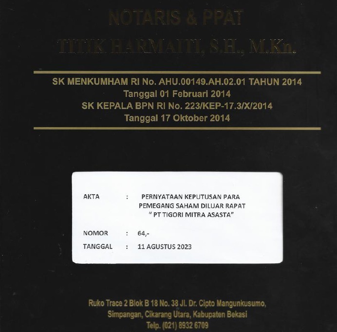 Akta Notaris : Akta Nomor 64 Tanggal 11 Agustus 2023